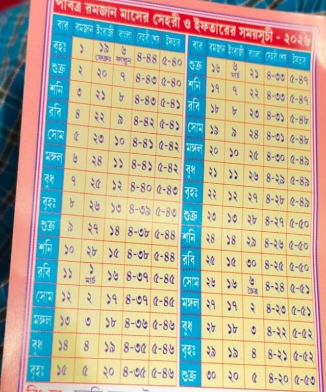 Happy Ramadan Kareem Time Table 2026 In Berrachampa